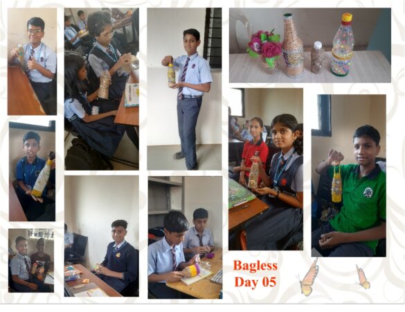 Best out of Waste….Recycled old water bottles by decorating them, painting them. This activity taken to develope artistic skills, following instructions, and fostering imagination.
