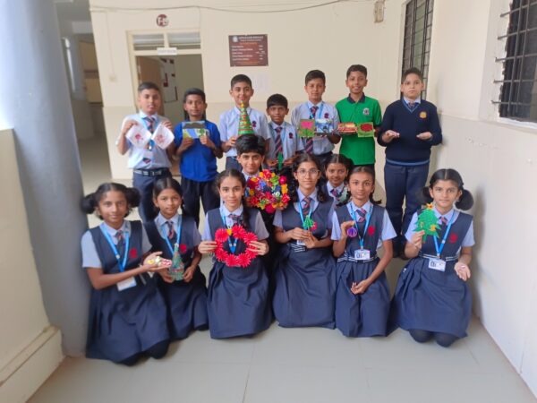 Students prepared different decoration materials for Christmas.
