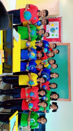 Students created a model of the Earth using simple materials to understand continents, oceans, and directions.