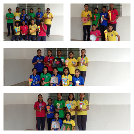 Students created decorative paper bouquets and painted cane baskets using different colors and designs. This activity enhanced artistic expression and aesthetic sense.